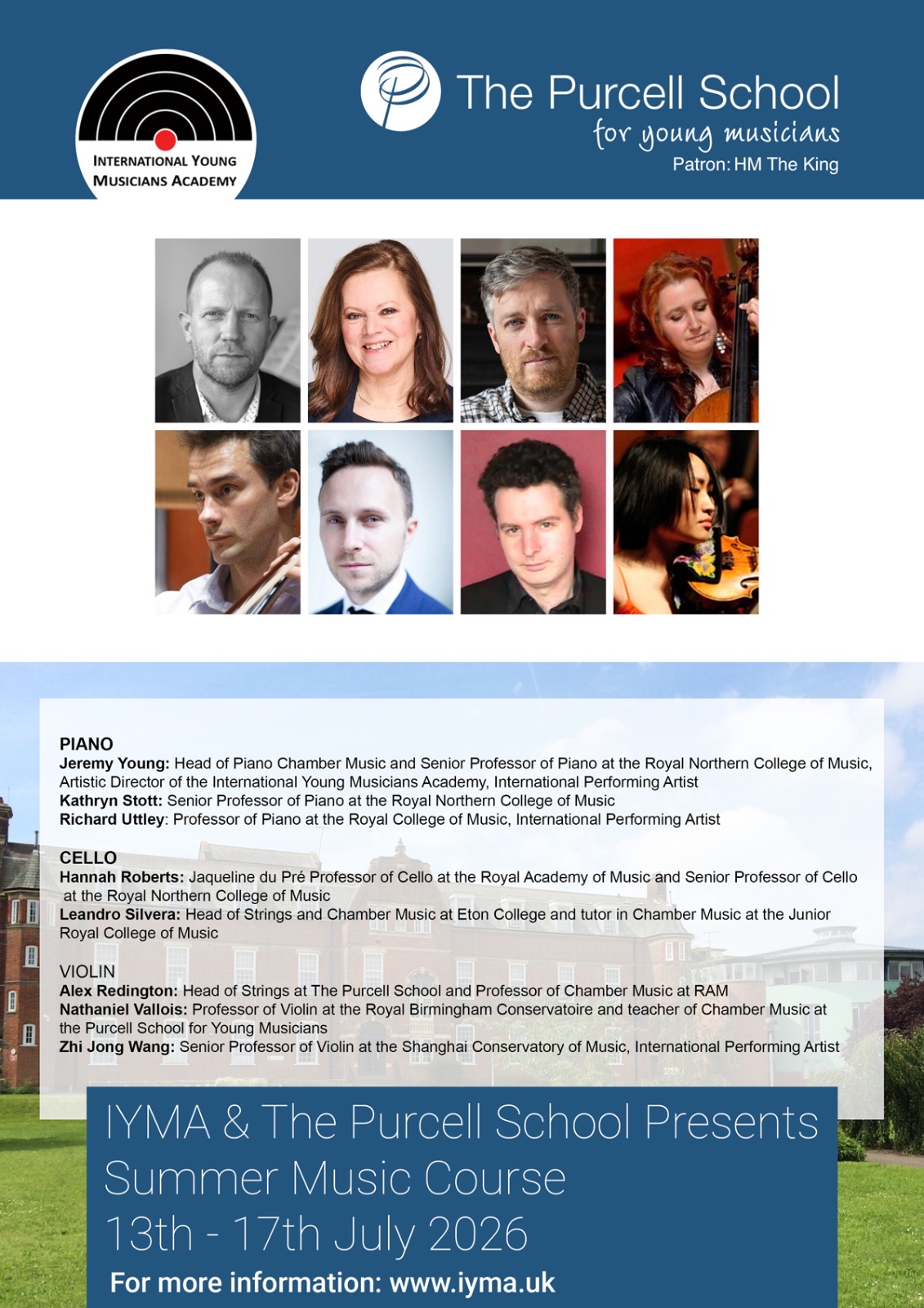 This summer, The Purcell School is delighted to host the International Young Musicians Academy (IYMA) Summer Music Course, taking place 13–17 July 2026 on our campus in Bushey.